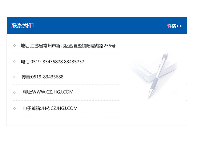 傳真:0519-83435688    郵編:213135    網址:WWW.czjhgj_com.yuyehulan.com    電子郵箱:JH@czjhgj_com.yuyehulan.com